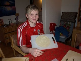 | Aðalsteinn að skera út laufabrauð að norðlenskum sið |